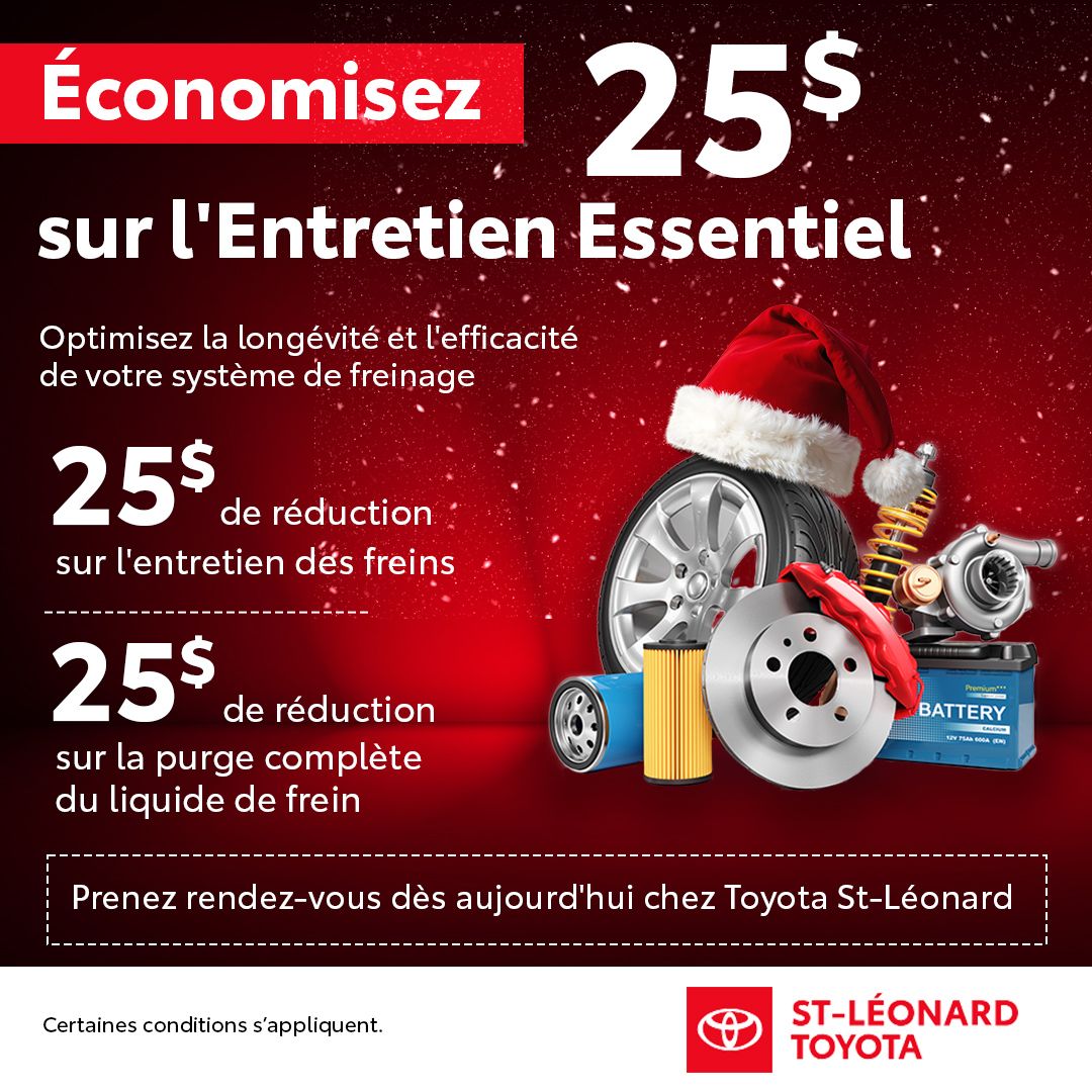 Réservez votre rendez-vous dès aujourd’hui chez St-Léonard Toyota et profitez de cette offre exclusive sur l’entretien des freins!